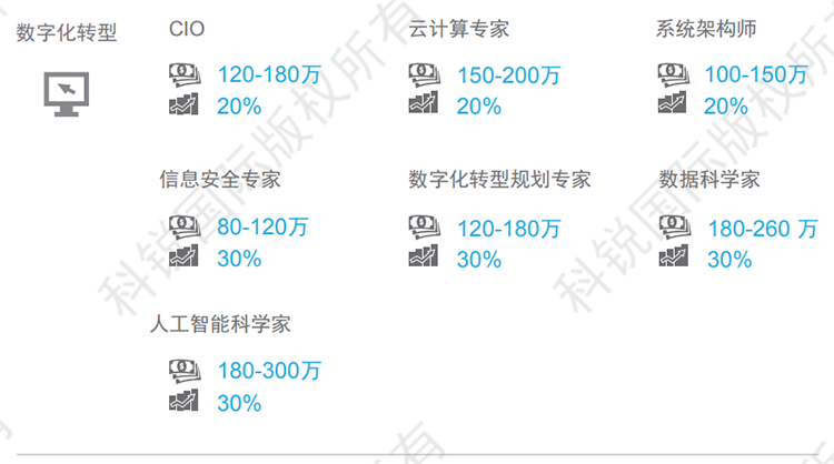 中国数字化转型正处于全面加速期。2020年4月20日,国家发改委提出以5G、人工智能、工业互联网、物联网为代表的新型基础设施,本质上是信息数字化的基础设施,与新基建核心技术直接相关的行业人才招聘需求猛增,聚焦在数字化服务、区块链、人工智能、数据服务、物联网、信息安全几个领域。本文带来2021JN江南JN SPORTS薪酬报告对数字化转型领域的人才招聘趋势分析。